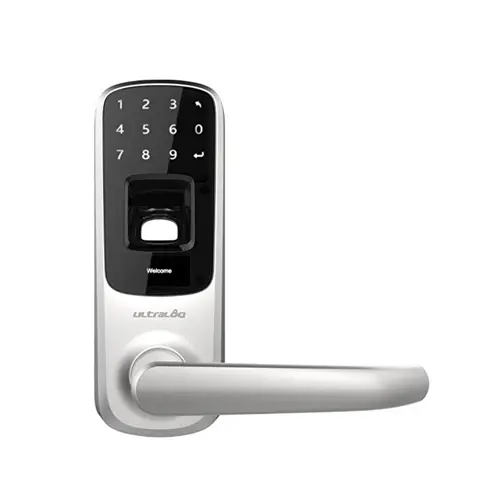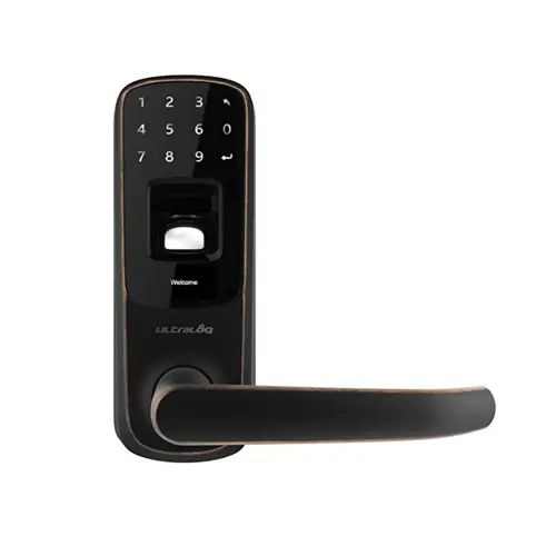 3 AA batteries. Up to 8,000 times access. Low battery alerts on OLED display and App. Innovation in clutch design makes Ultraloq more reliable but 50% less power consumption than traditional clutches.