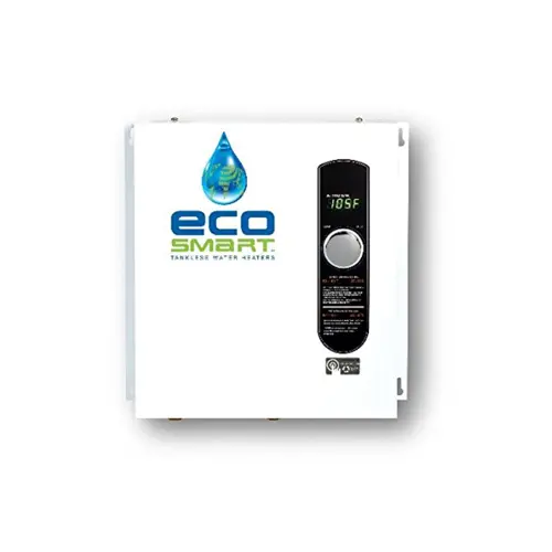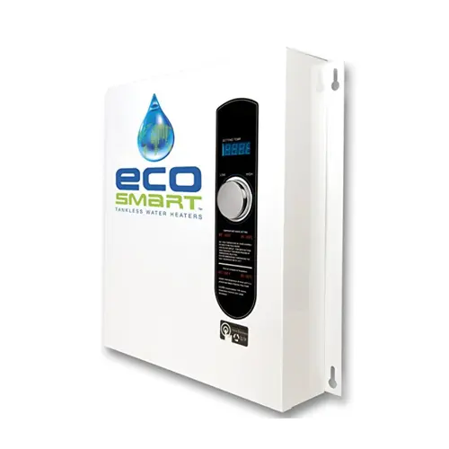 Ecosmart ECO 36 Electric Tankless Water Heater, 36 KW at 240 Volts with Patented Self Modulating Technology Why EcoSmart? If you have a need for a high amount of hot water then the ECO 36 is the right choice. The ECO 36 is the largest electric tankless water heater available with our patented self modulating technology. This smart technology tankless water heater is ideal for the northern United States, where incoming water temperatures can reach as low as 37 degrees F. The ECO 36 is capable of heating nearly 3.5 gallons per minute at this low temperature. To put that into perspective, it can handle up to two showers running at the same time and never run out of hot water. For homes in the southern United States, the ECO 36 is perfect for large Roman-style and Jacuzzi tubs or high demand of hot water between multiple applications. It can handle up to 6 gallons per minute, which means you can run four showers and a sink simultaneously and never run out of hot water. A digital temperature control allows you to set your temperature in increments of 1 degree, so you can set the temperature to how you like it. The ECO 36 is the most powerful model from our full line of tankless water heaters, with the capacity to handle a large single-family home. Take a look at our full line of tankless water heaters below to see whats perfect for you. THIS MODEL REQUIRES 150 AMPS DEDICATED!
